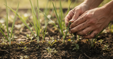 - 모종 놓기: 모종을 10~15cm 간격으로 비스듬히 세우거나 수직으로 세워 놓습니다.